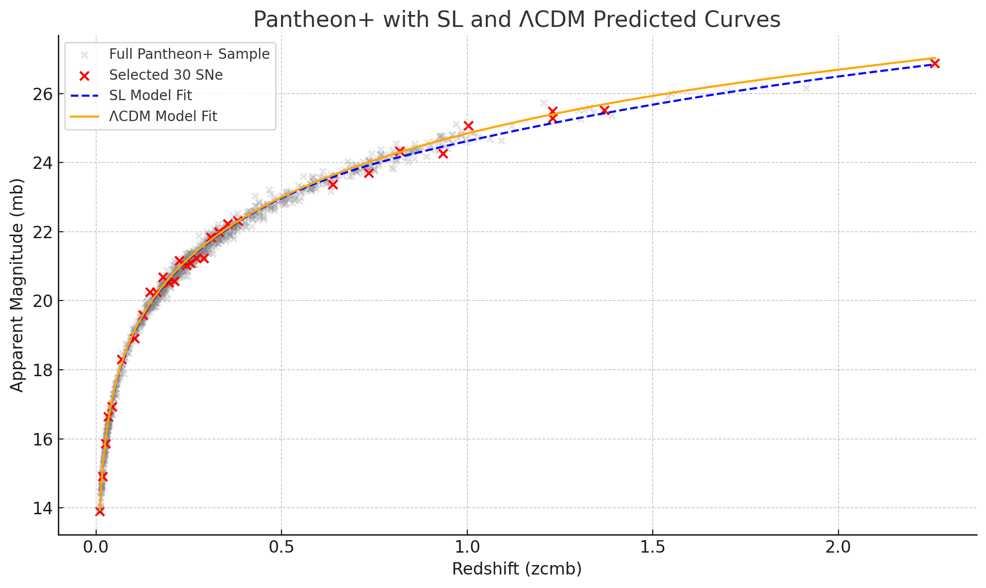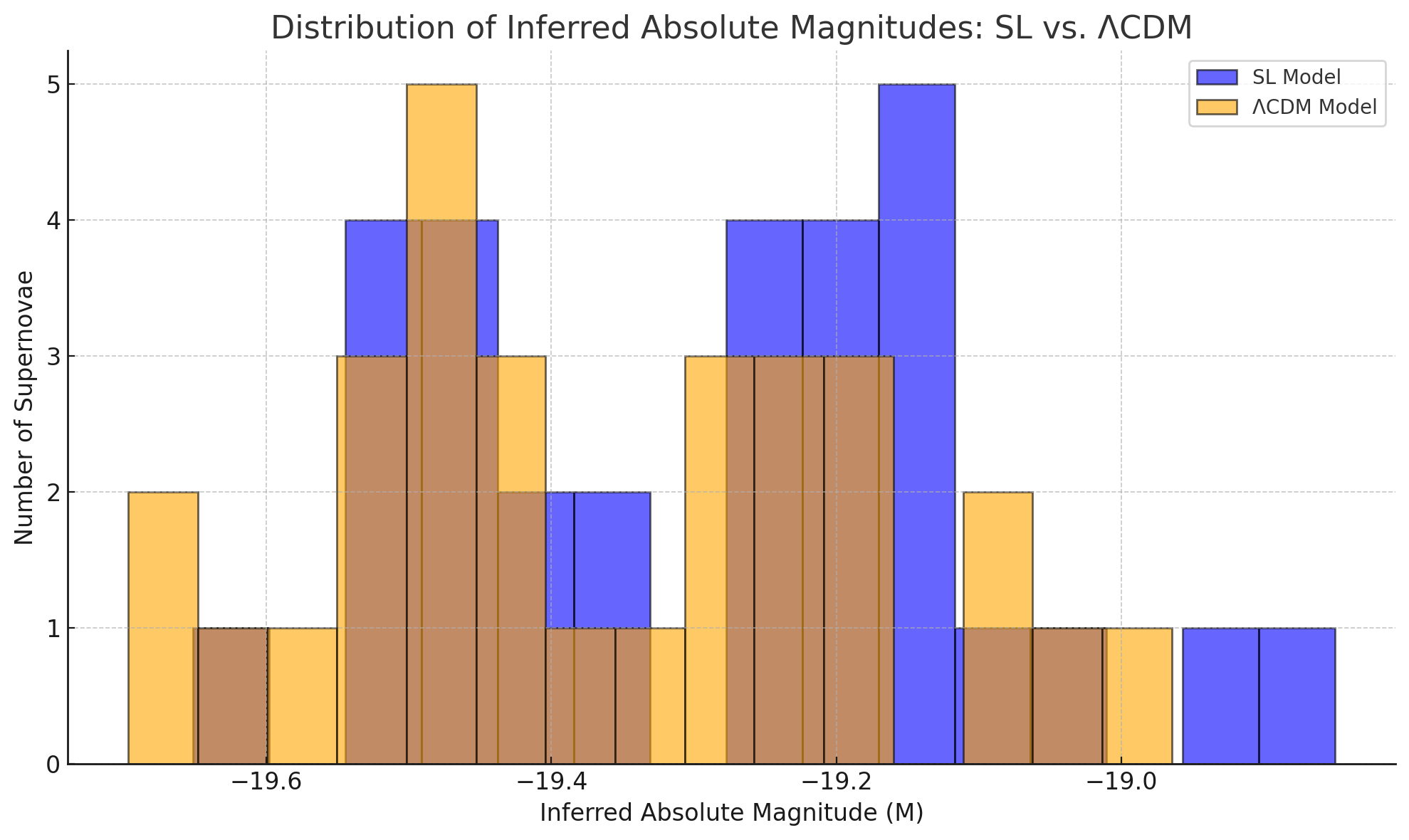 Residuals of inferred absolute magnitudes of supernova luminosities, standard deviation of 1.93 SL versus 1.91 LambdaCDM